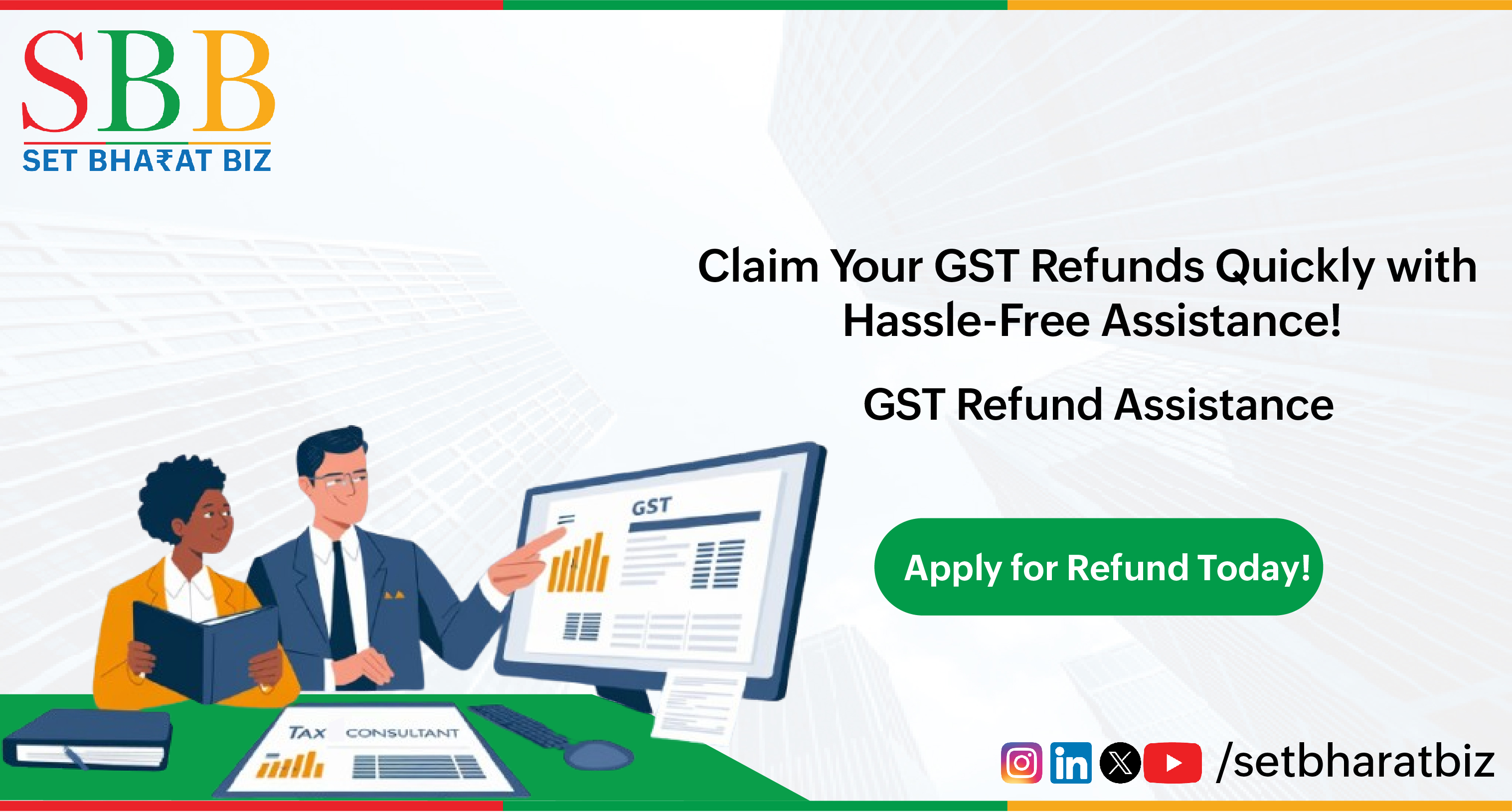 A service that helps businesses claim GST refunds for excess tax paid, ITC, or exports.